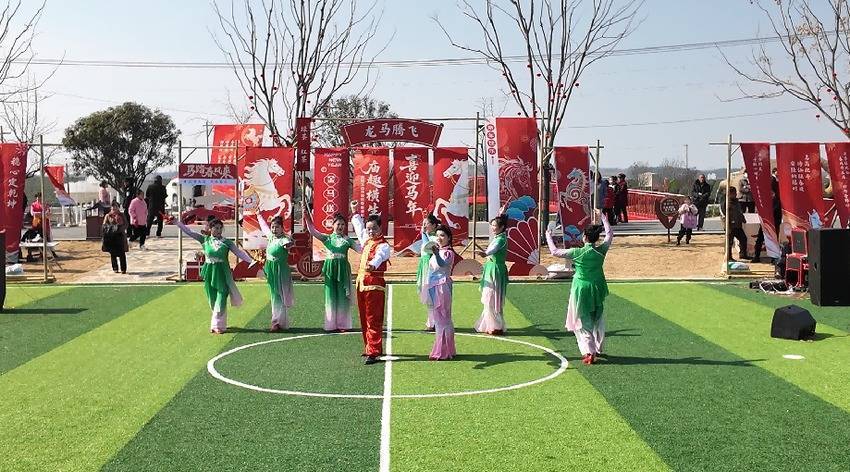 活动在古风热场舞《国潮盛世》中激昂开场。相关领导登台致辞,向现场群众送上新春祝福,并详细介绍了本次“喜迎马年·‘庙’趣横生”主题庙会的特色亮点。随后,在热烈的掌声中,市、乡领导共同为活动启幕。伴随着激昂的音乐与腾空而起的气球,“马上有喜市”年货大集同步热闹开市,瞬间将喜庆欢腾的氛围推向高潮。